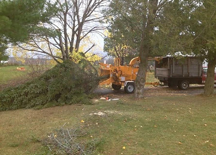Our wood chipper is equipped with a winch to pull in small trees and material up to 15 inches in diameter. It gets the job done in a hurry, if you'd like the chips we can leave them or if you're looking for chips we deliver.